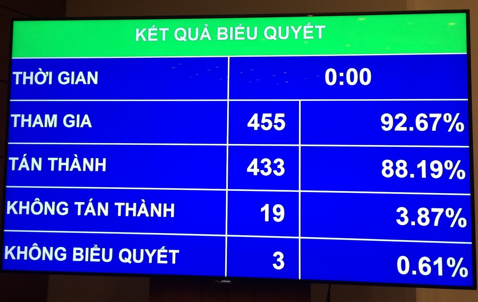 Dự án Luật Quy hoạch tại kỳ họp lần này đã tiếp thu nhiều ý kiến đóng góp, làm rõ nhiều vấn đề vướng mắc, quy định chặt chẽ, rõ ràng hơn và có tính khả thi để thực hiện. Theo đó, 433/455 đại biểu “ấn nút” biểu quyết thông qua, bằng 88,19%.